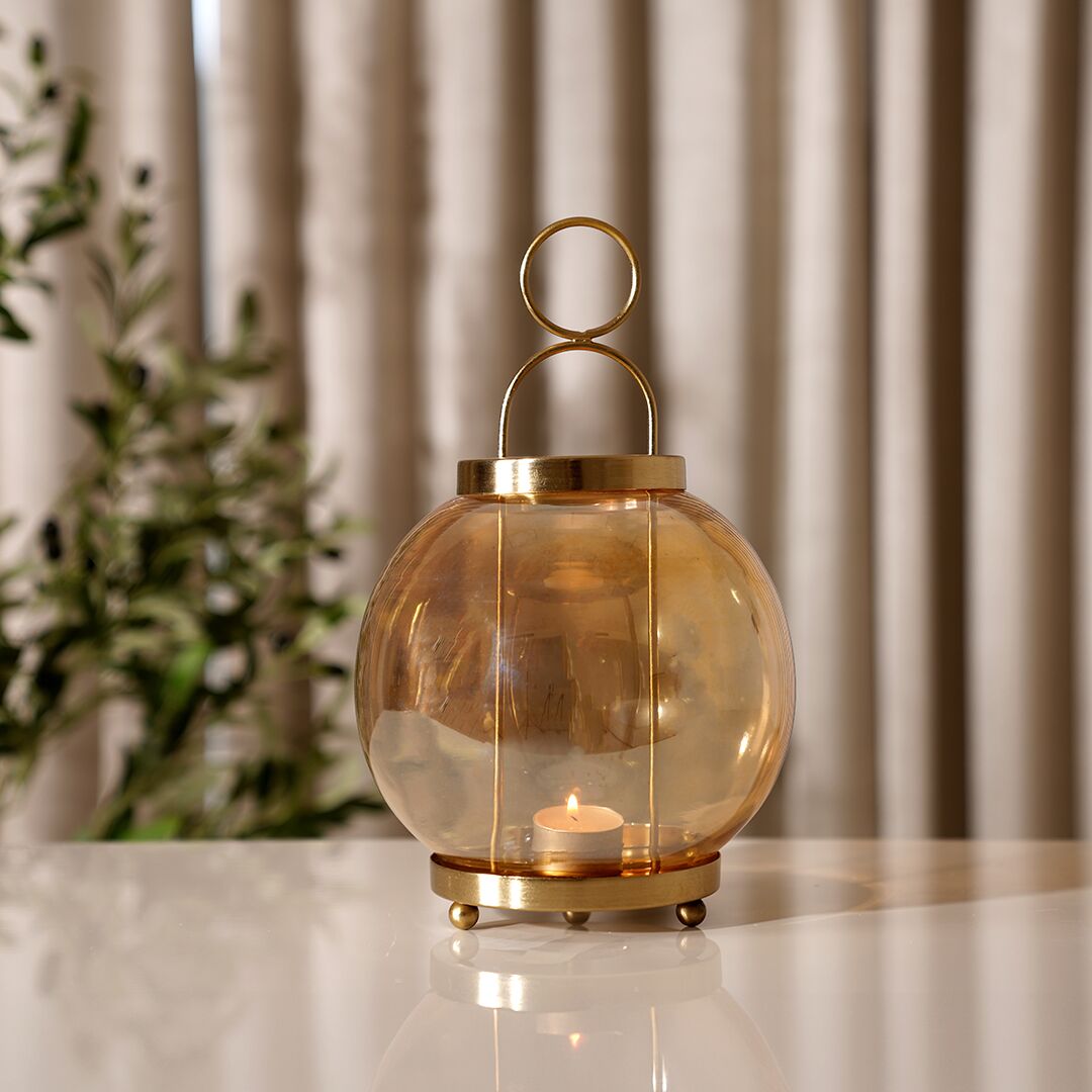 Adro Lustured Glass Metal Candle Holder Amber