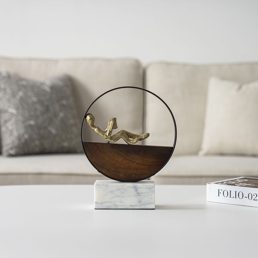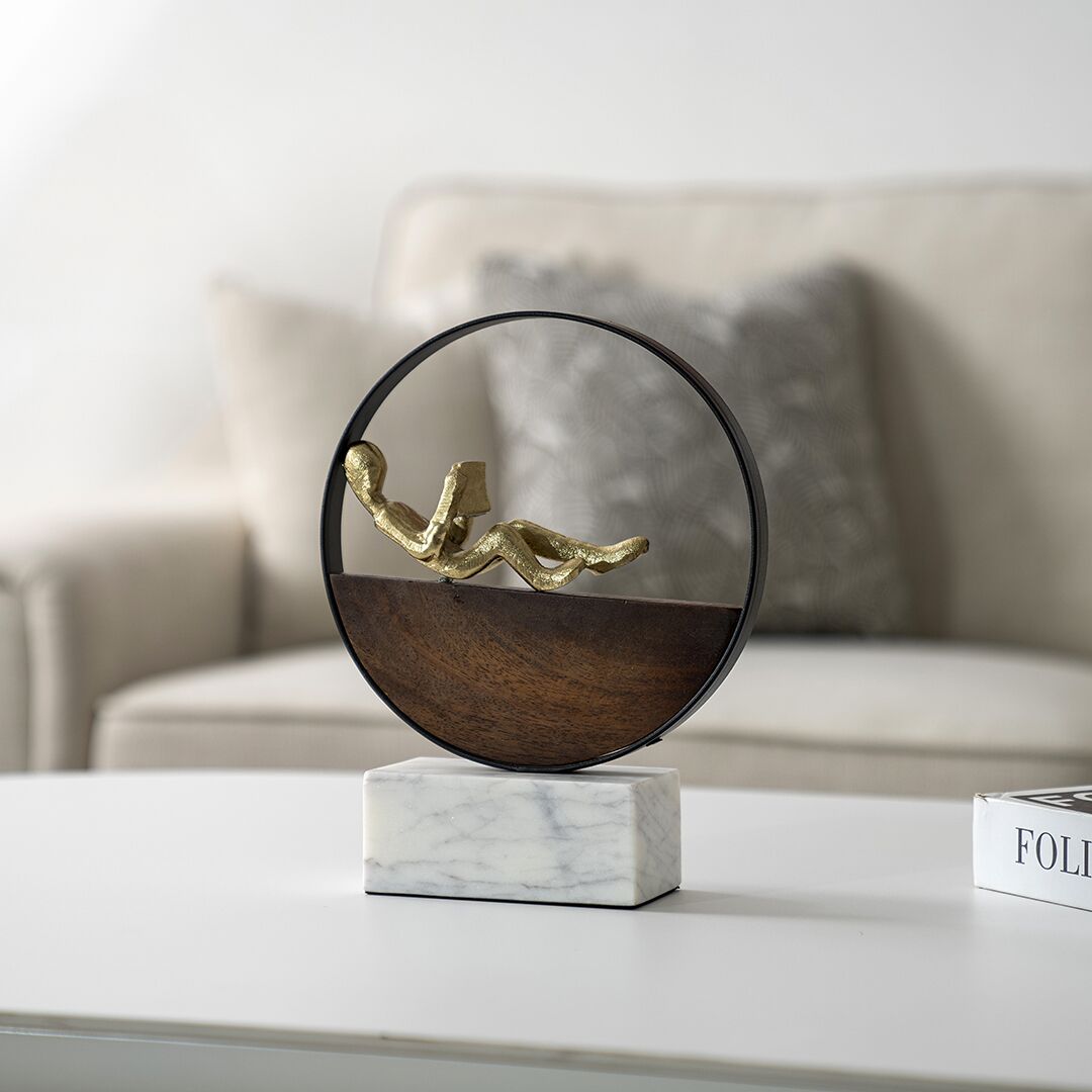 Casa Metal wood accent with marble base 20X6.5X26.5cm