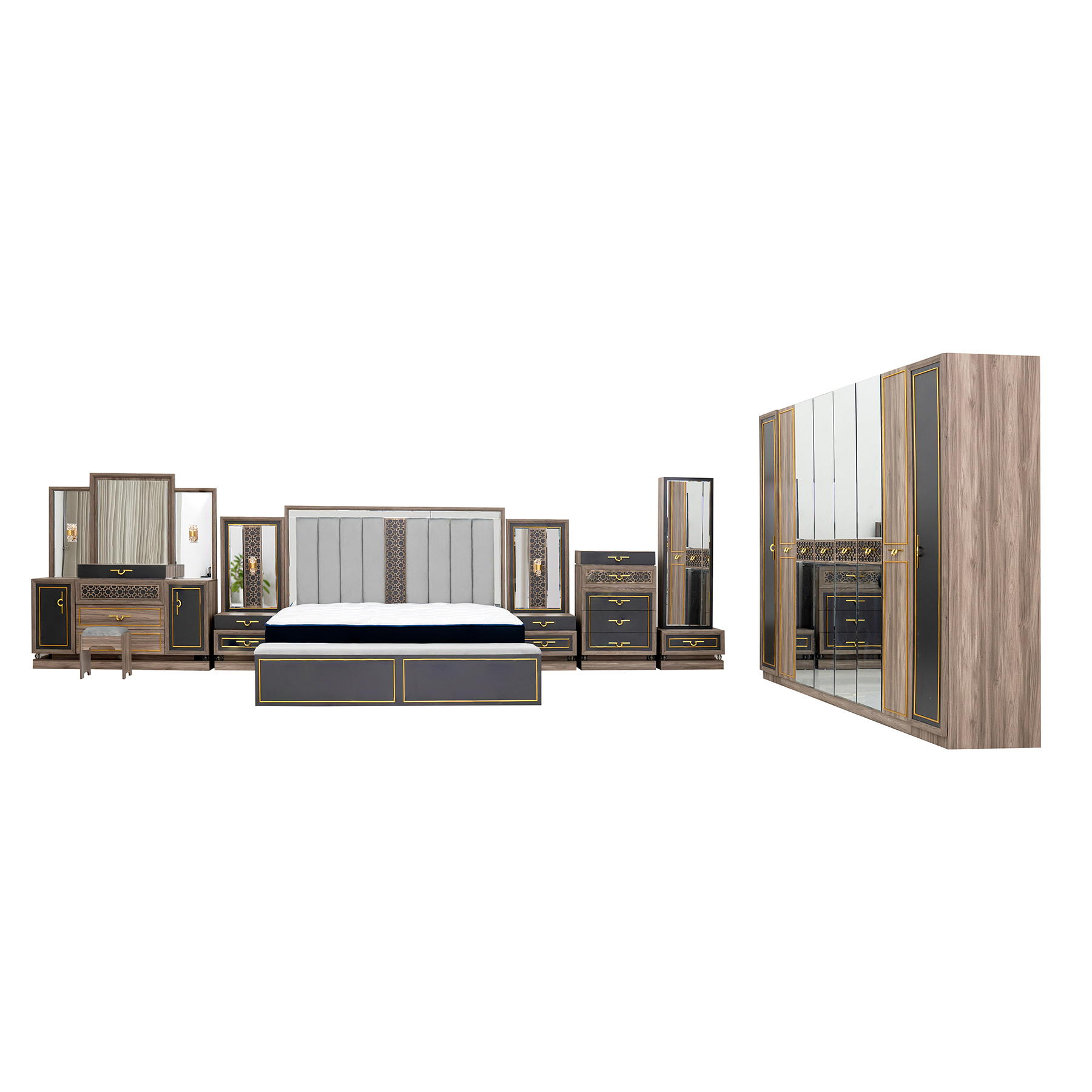 | Bedroom Components: | 9-pcs Set |