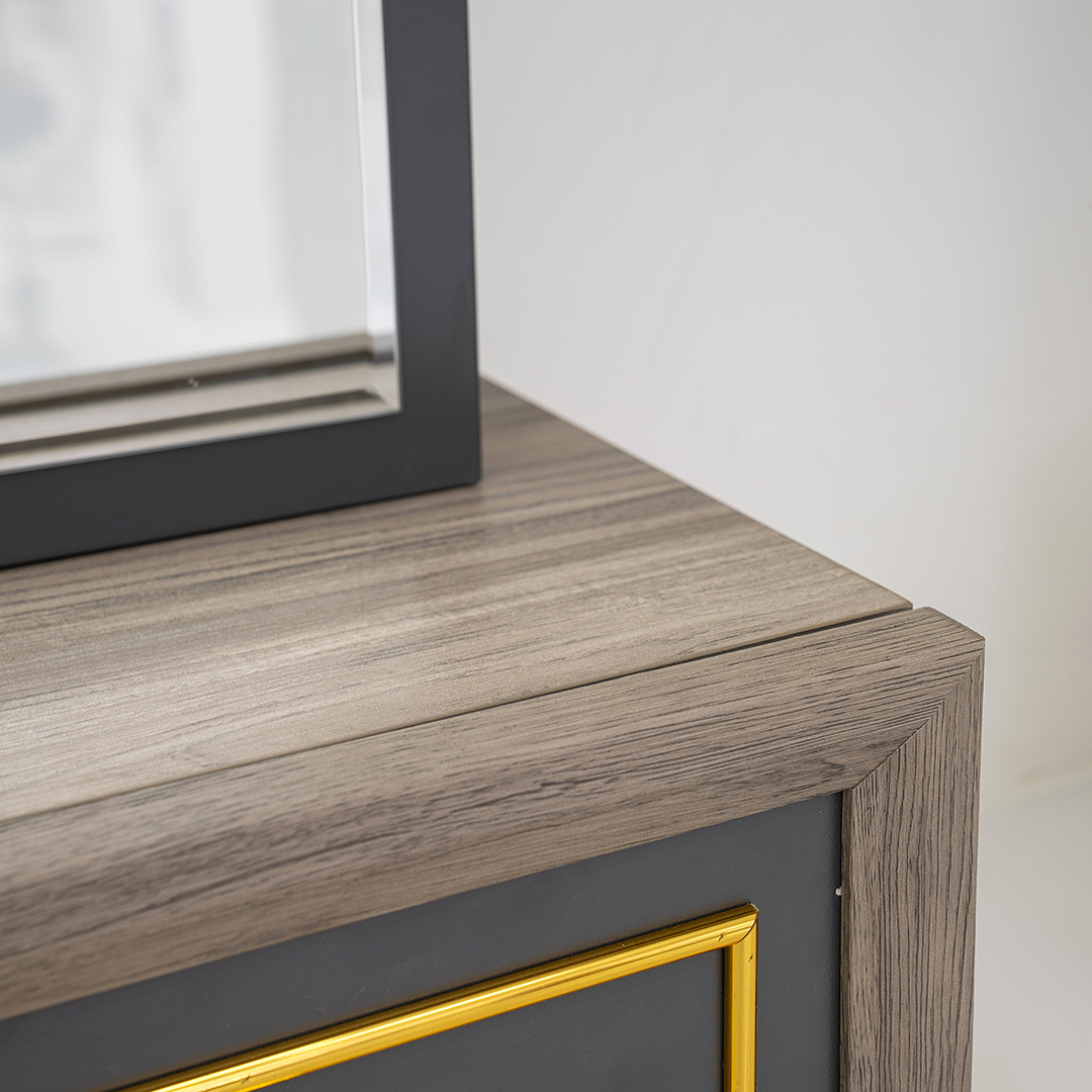 | Set Includes: | 1 Bed, 1 Bed Bench, 2 Nightstand, 1 Dresser, 1 Dresser Stool, 1 Tall Mirror, 1 Chest of Drawers, 1 Wardrobe |
