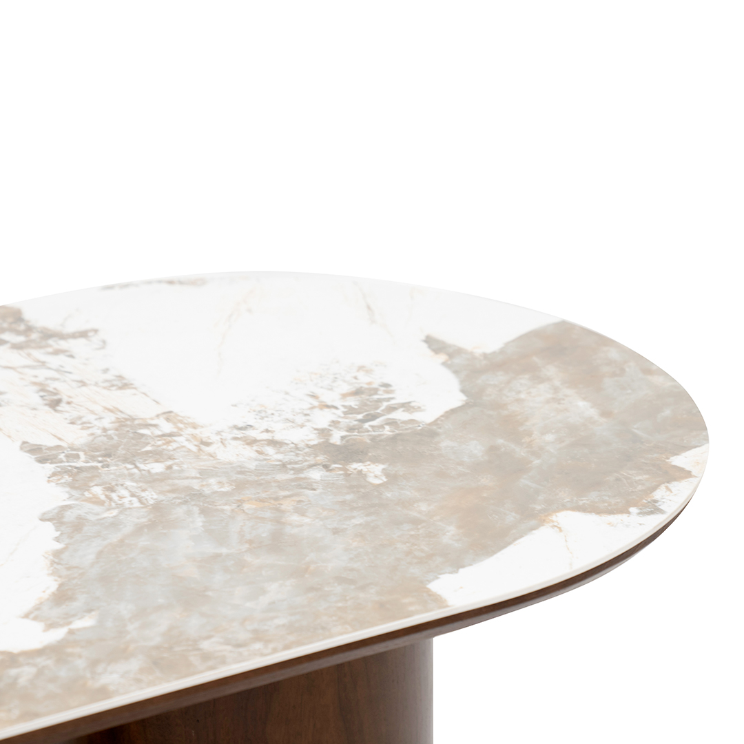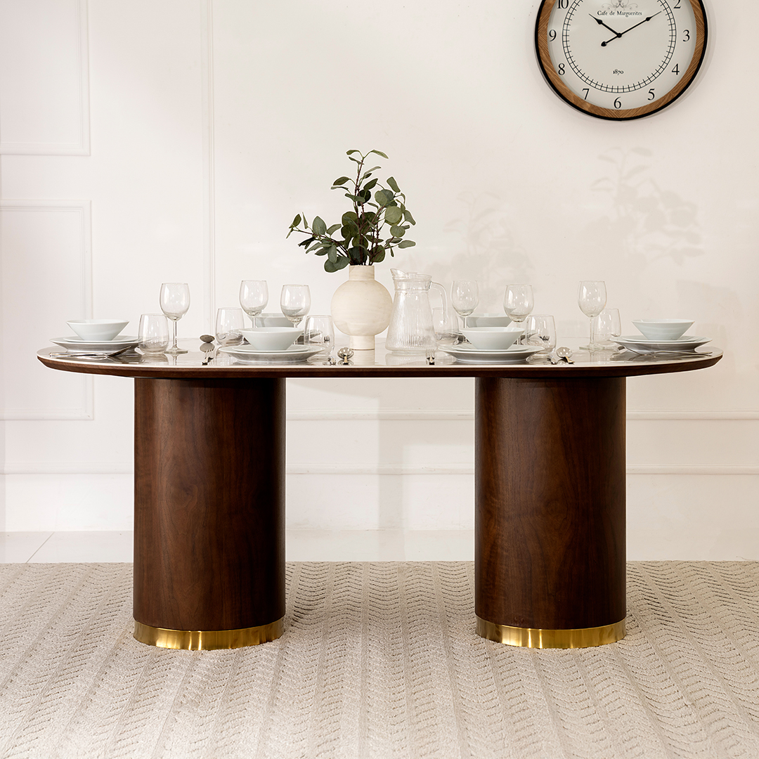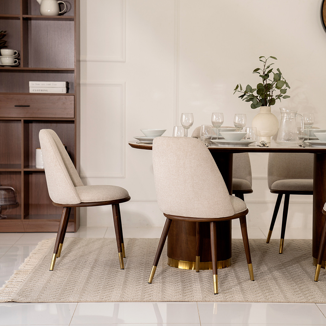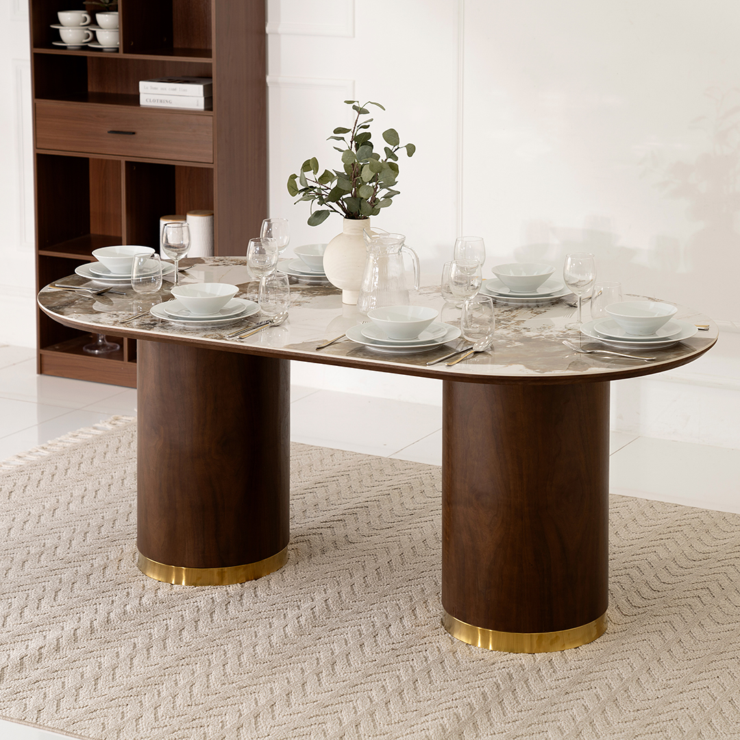 CRYSTAL DT8126/DC2051 OVAL DINING SET 1+6 COL WALNUT AND BEIGE
