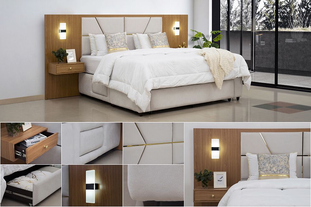 | Additional Features: | Headboard with Lamp and Drawer |