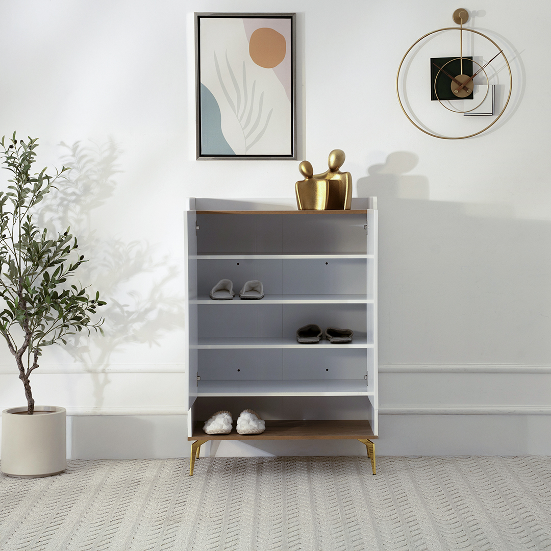 FIONA SC-8020 SHOE CABINET COL WHITE & GOLD