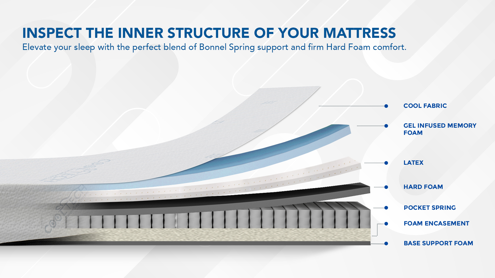 Comfortable feel to the contours of your body with this Gel infused memory foam and latex mattress Individually wrapped pocket coils contains the body movements of you and your partner for totally isolated, undisturbed sleep. Lowers body temperature. Comfortable memory foam with infused gel for cool sleep