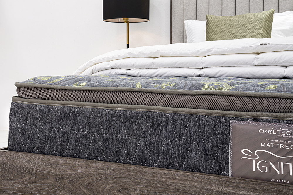 Introducing the “Ignite” mattress, a harmonious blend of softness and support. It features a core of pocket springs, along with foam and soft-profiled foam quilting. The super-soft foam delivers complete softness, making it an excellent choice for those who desire a truly cozy night’s sleep. Standing at a comfortable 30 cm in height, the “Ignite” mattress offers a plush and luxurious slumber experience.