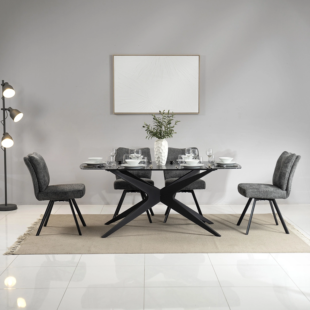 Kare 6-Seater Glass Top Dining Set-Grey