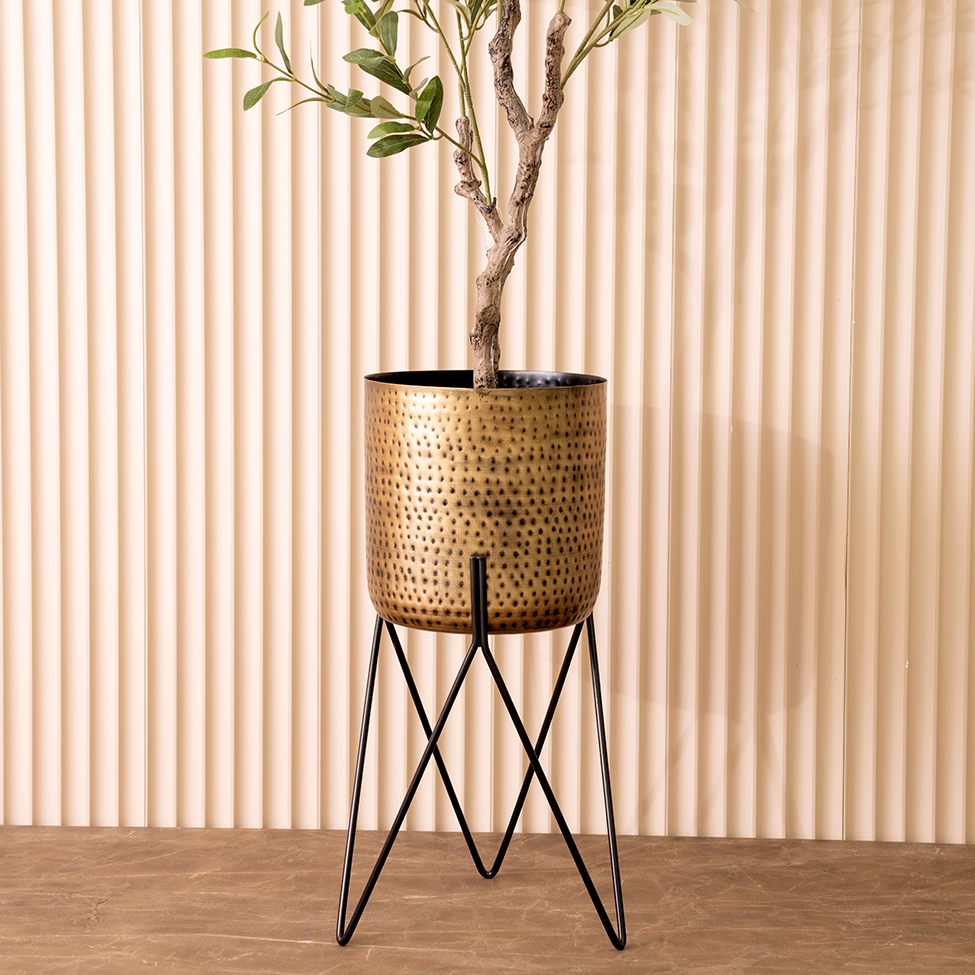 Keeth Metal planter with stand gold 25X25X56 cm