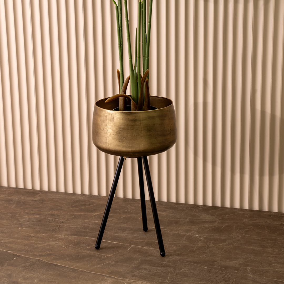 Keeth Metal planter with tripod stand gold 25.5X25.5X50 cm
