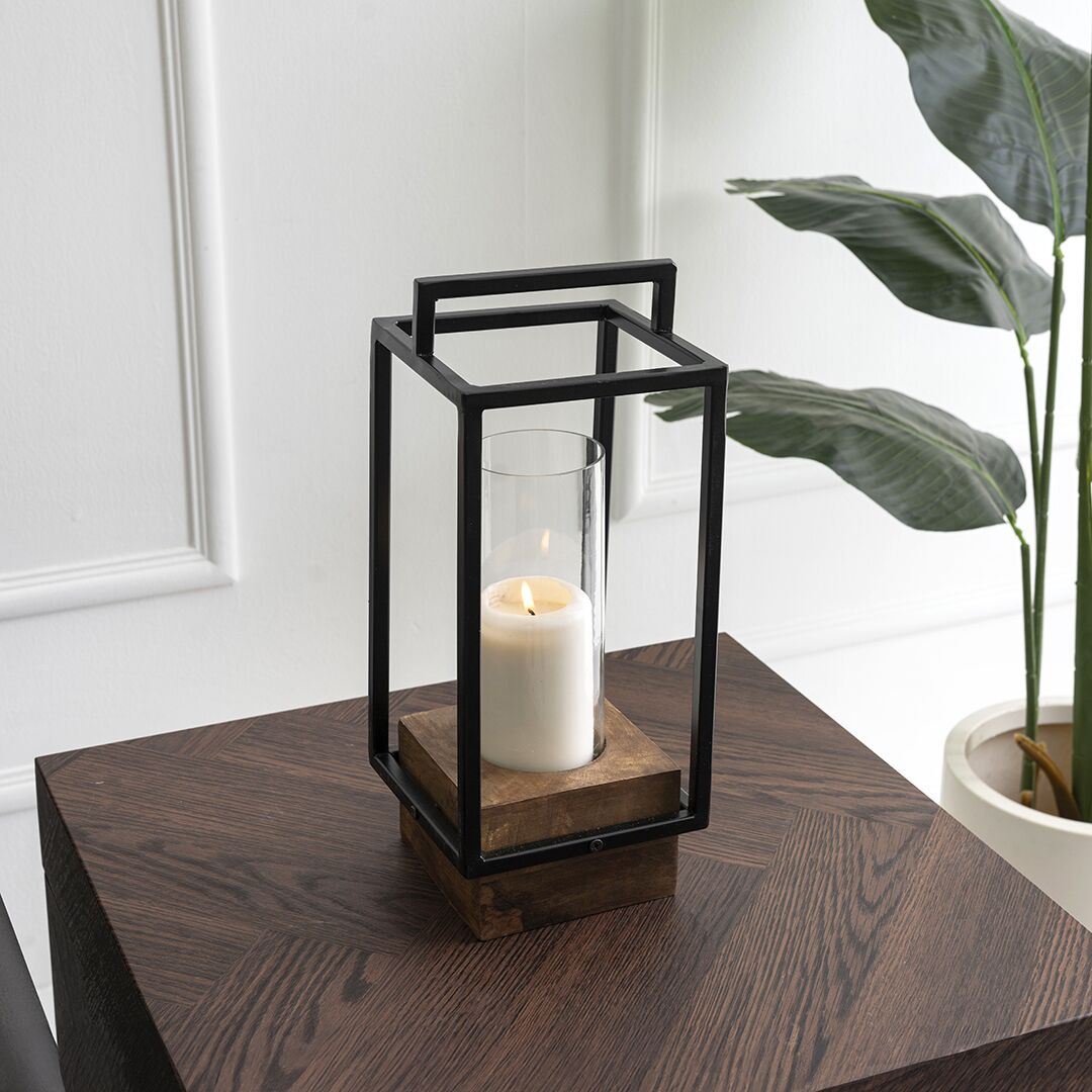 Keeth Wooden Metal Candle Holder- 15 cm