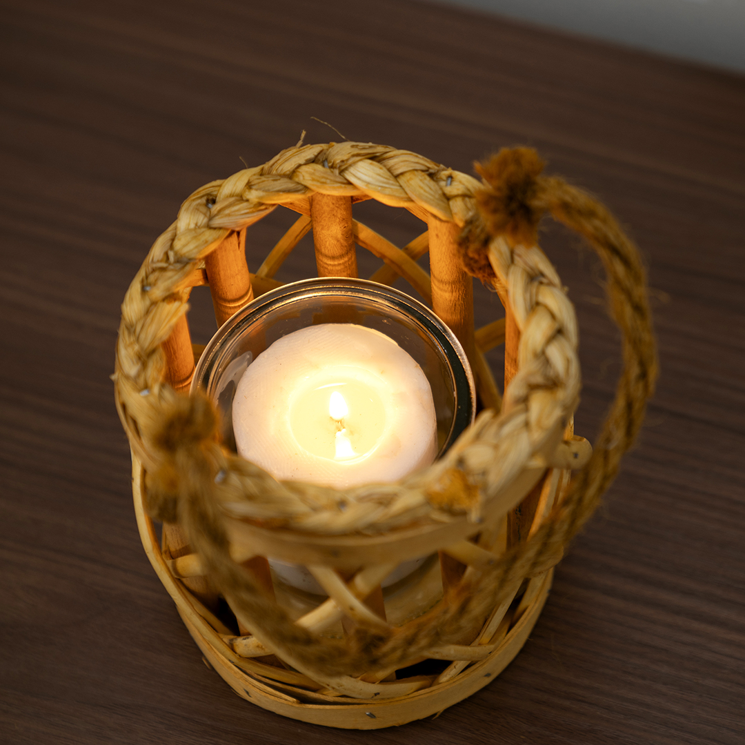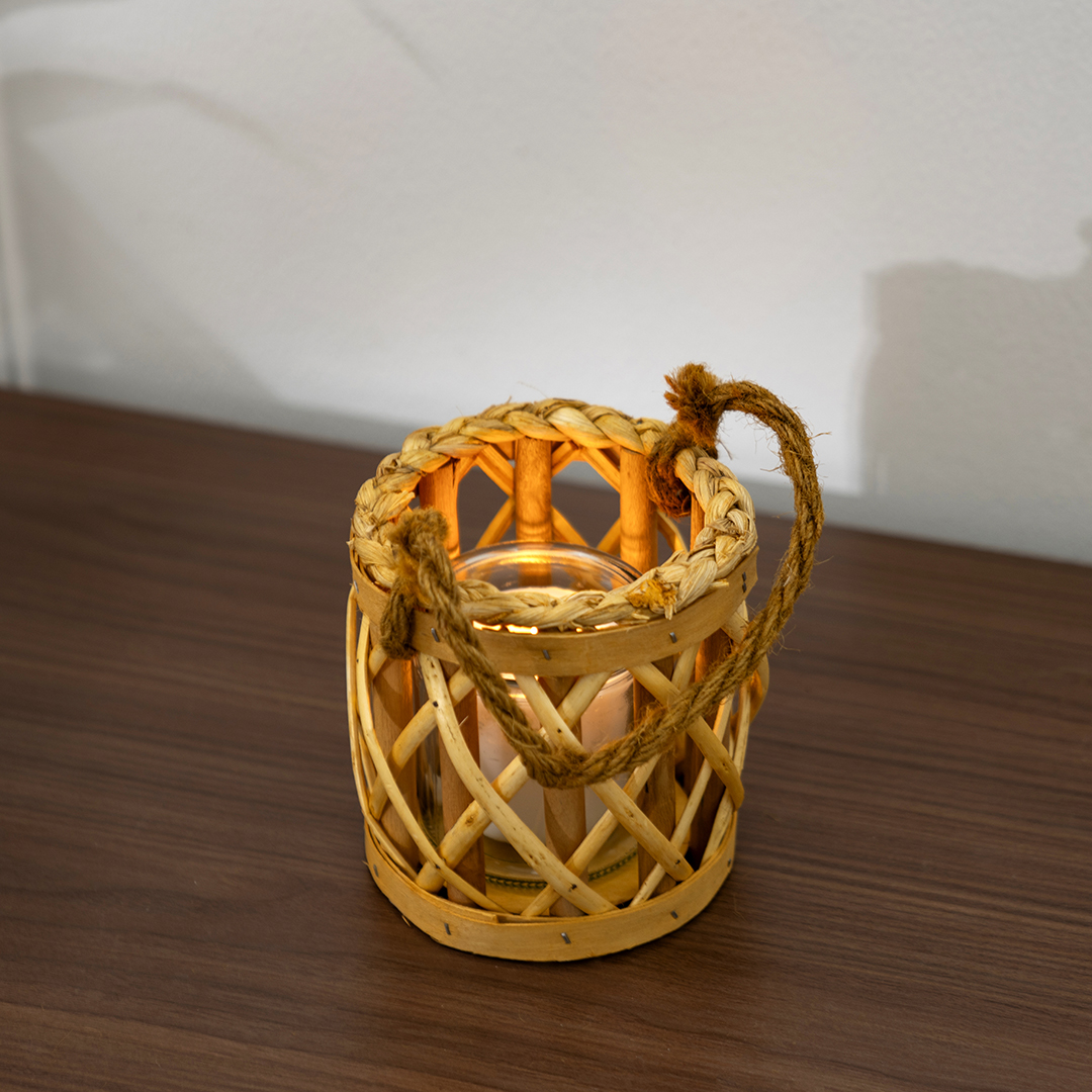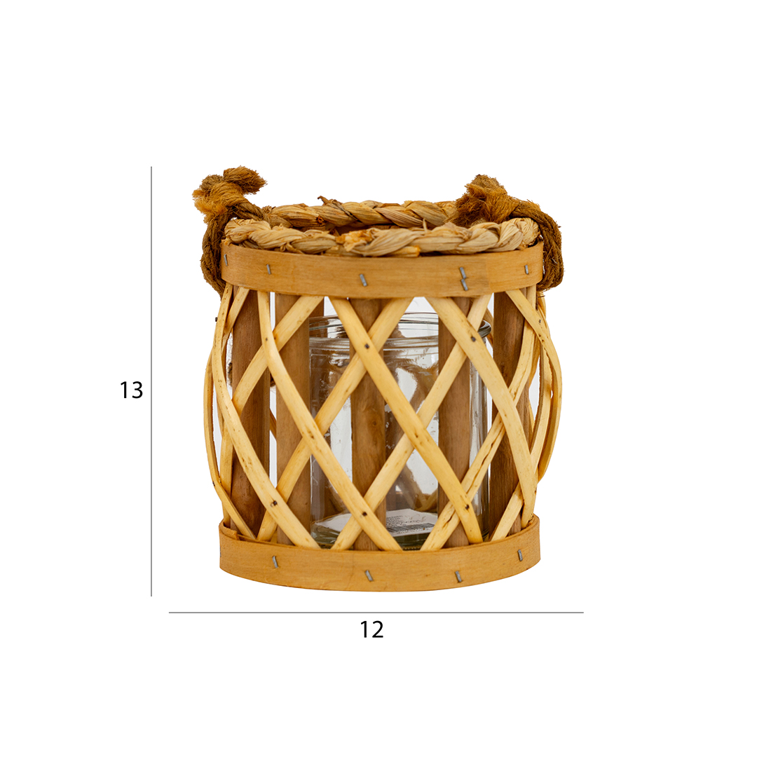 Lorenz willow lantern with glass votive 12x12x13cm