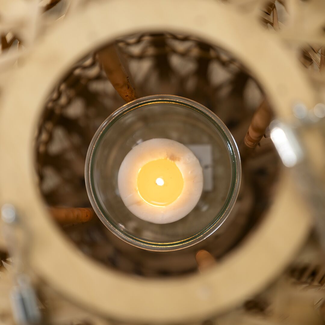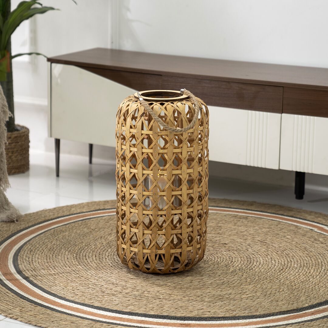 Lorenz wooden lantern with glass votive 17x29x55cm