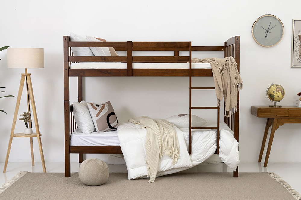 NEVA – Bunk beds are an all-time kids’ favorite! This wooden one is ideal to fit into any home with ease. Whether your home boasts of a modern setting or a classic one, the NEVA will fit in just fine. This Malaysian bunk bed is the best option for those looking for style, comfort & durability.