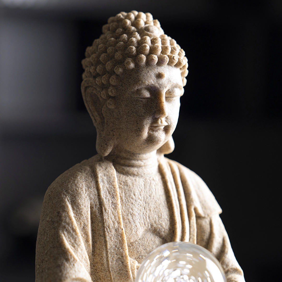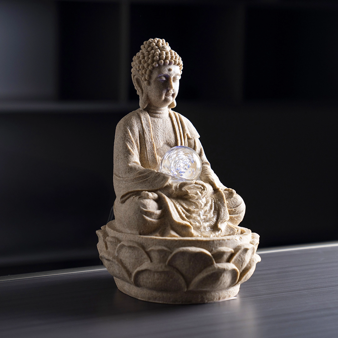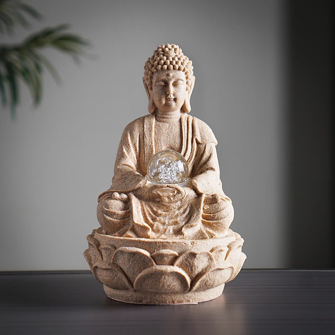Rivulet Buddha Indoor Fountain With Crystal Ball Beige