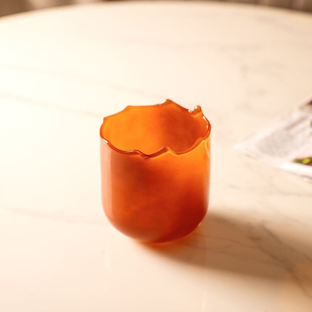 Ruse glass amber half crack vase 12x12x14.5 cm