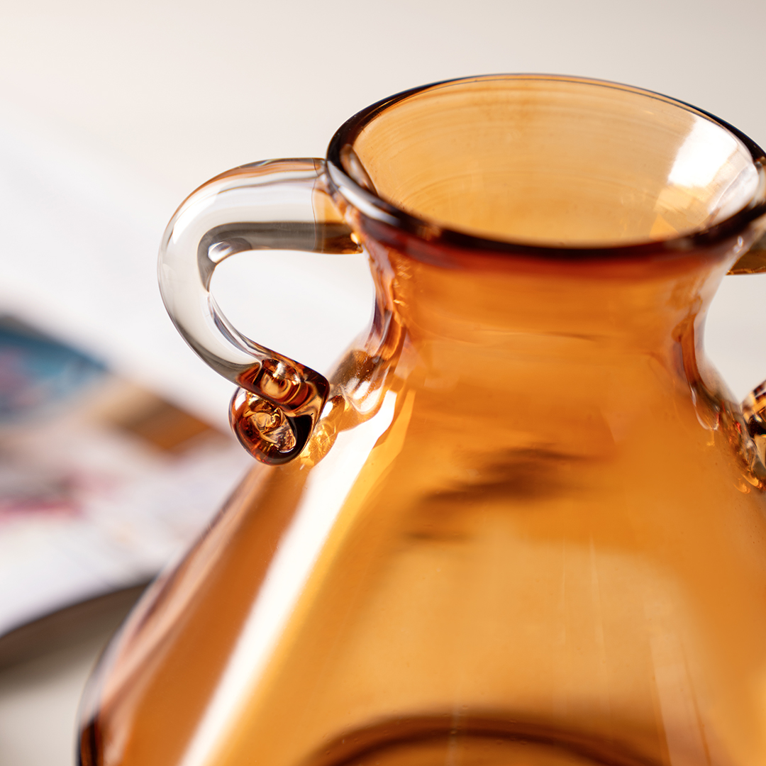 Ruse glass amber texture handle vase 16x16x15.5 cm
