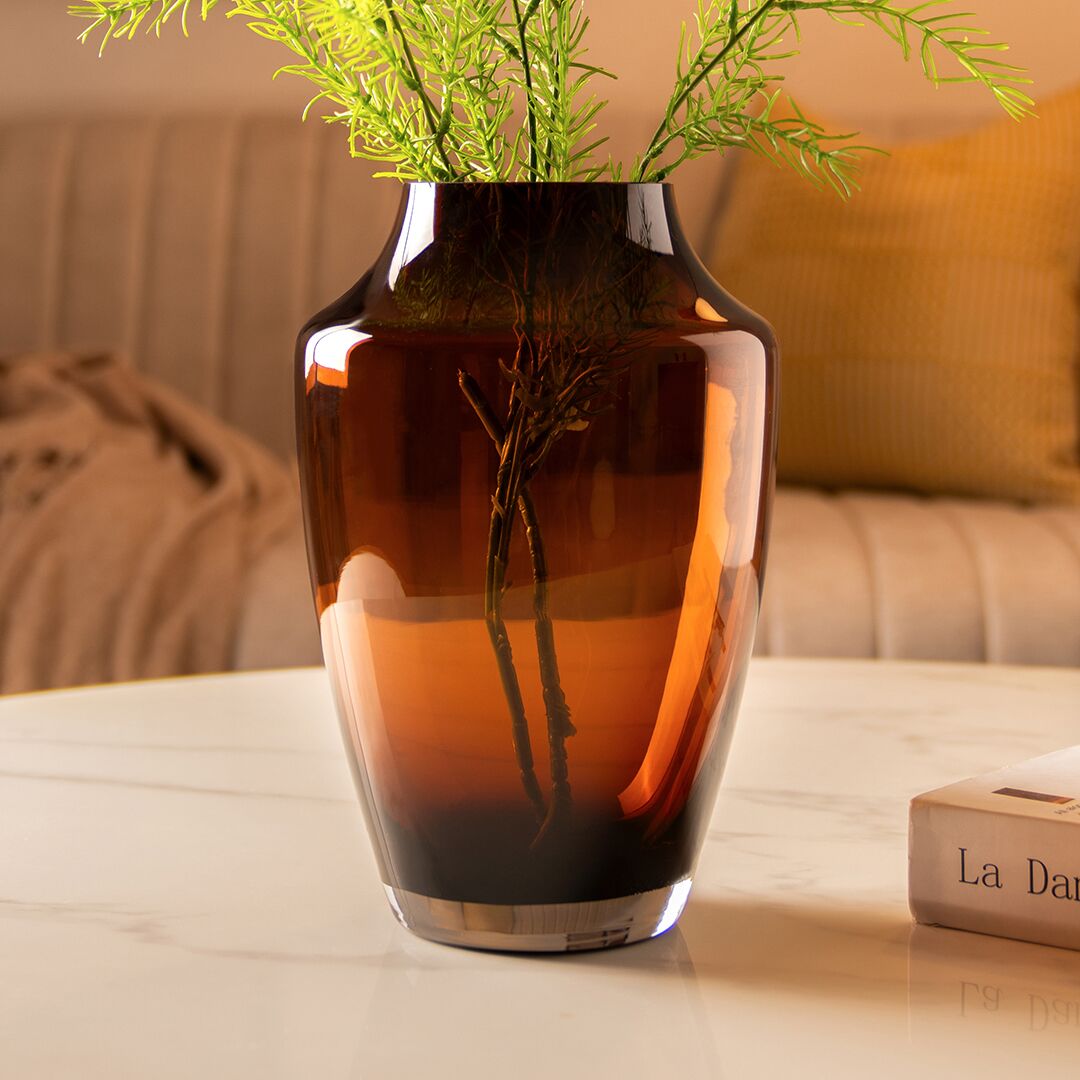 Ruse glass amber texture vase 16x16x25.5 cm