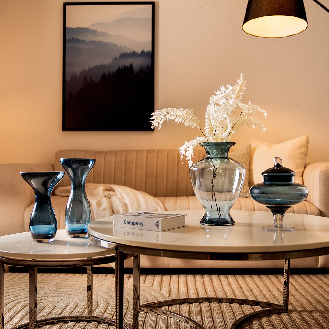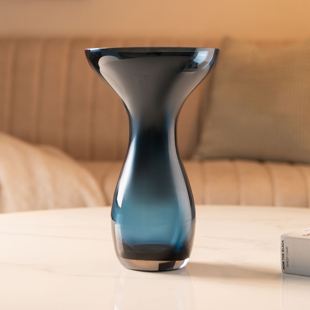Ruse glass Blue texture vase 16x16x25 cm