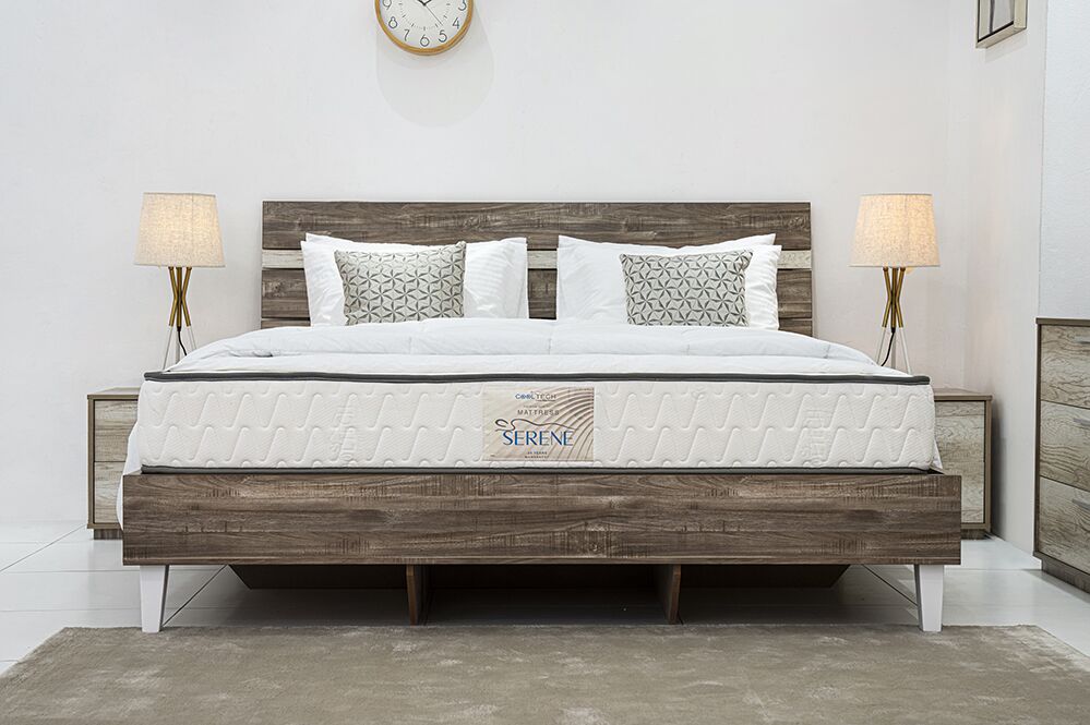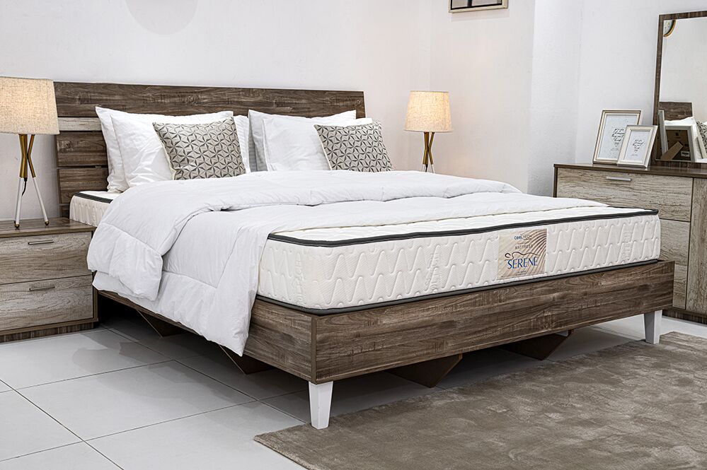 Introducing the Serene mattress model, it boasts a combination of a Bonnell spring system and quilting, enveloped in layers of Normal Comfort Foam for a medium-firm feel. This mattress stands at a comfortable 24cm in height.
