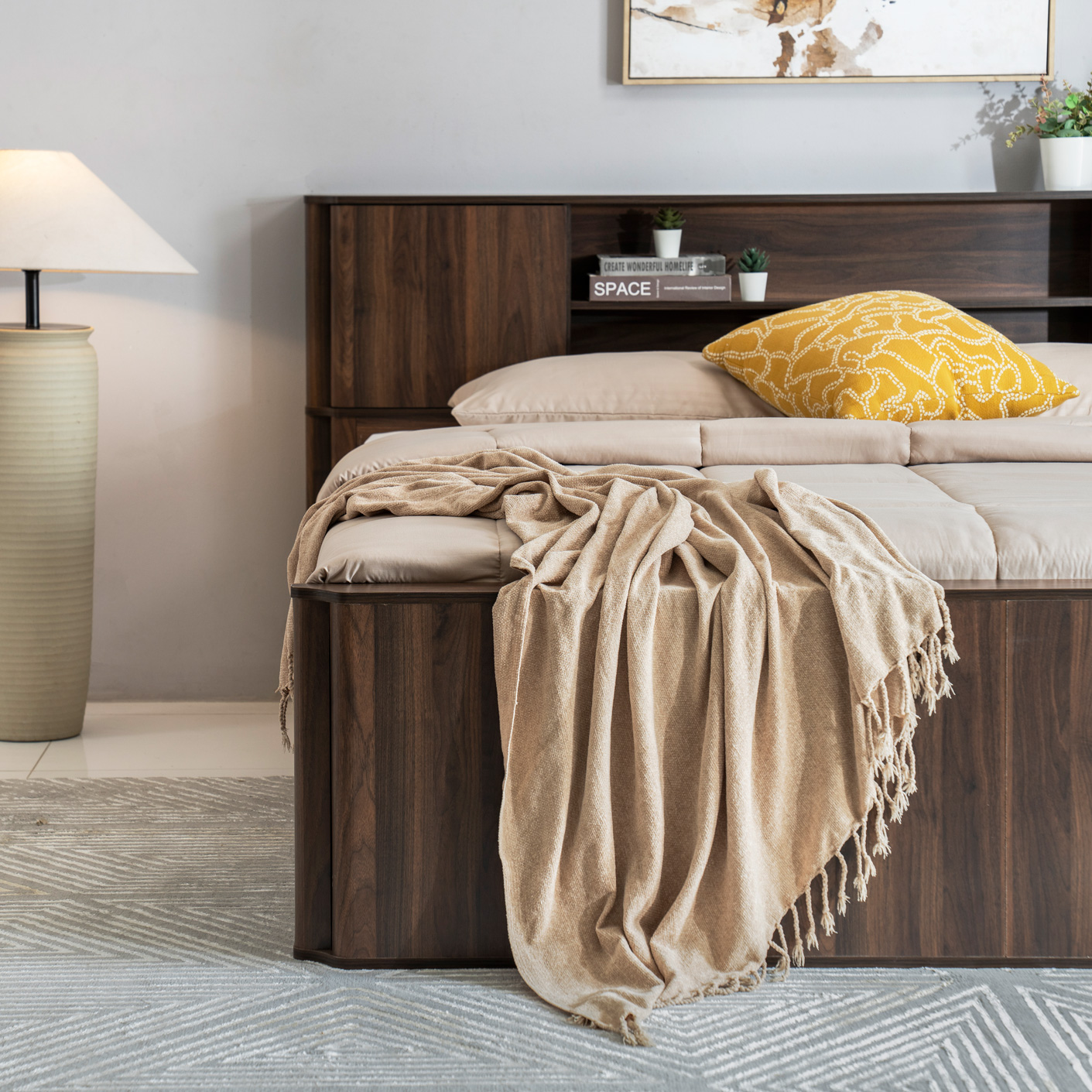 | Headboard Style: | Non-Upholstered with Storage |