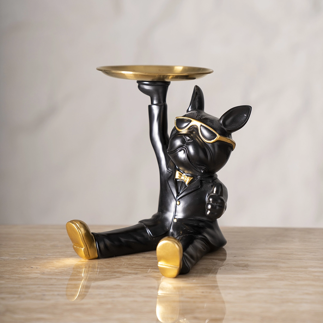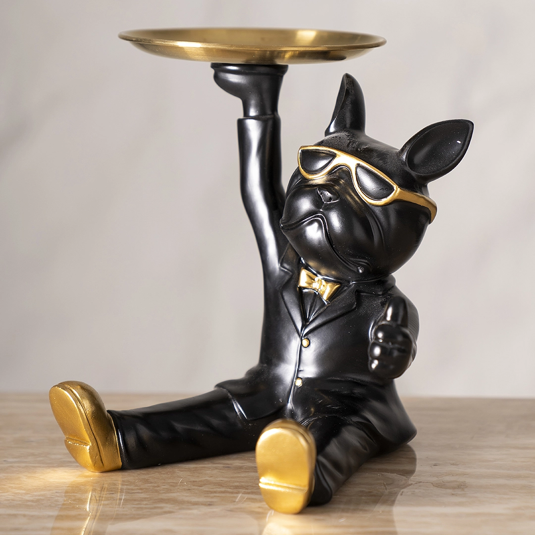 Swagster Seated Dog Butler Black & Gold 17×18.5×19.5Cm