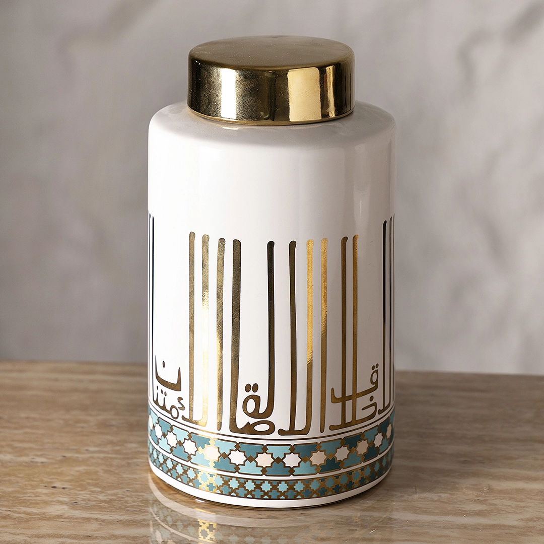 Taliah Ceramic Jar White/Gold 14.5×14.5x25Cm