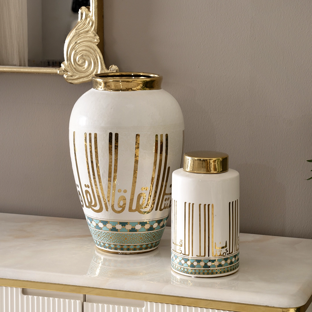 Taliah Ceramic Vase White/Gold 25x25x37.5Cm